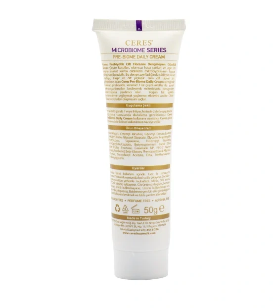 Pre-Biome Daily Cream supports healthy skin by boosting beneficial bacteria through its prebiotic-rich formula. Ideal for all skin types, it helps restore moisture, radiance, and balance, especially for skin affected by dryness and environmental stress. Enriched with Inulin, Fructose, Ceramide NP, Squalane, and Shea Butter.